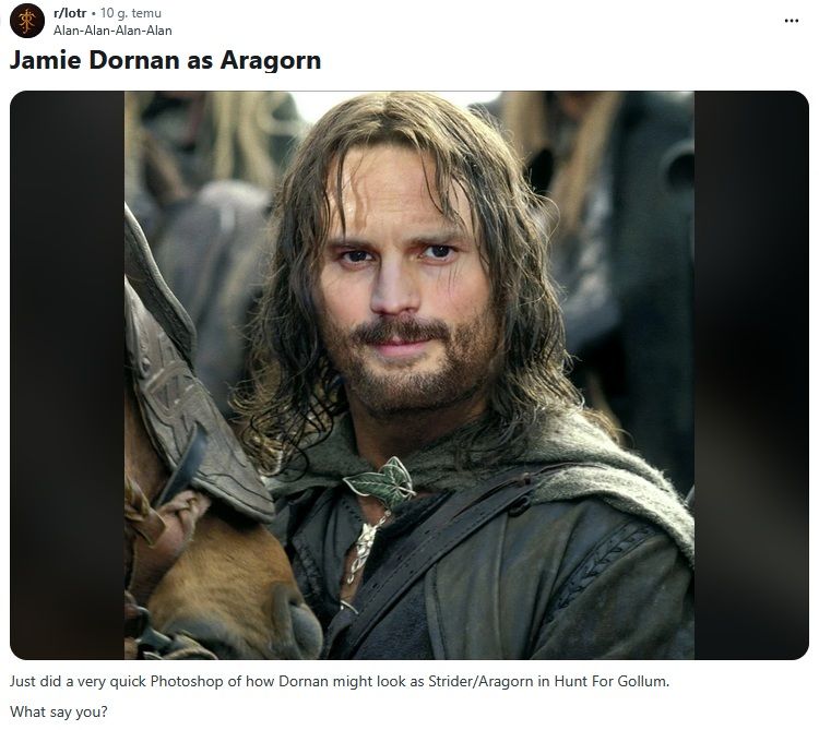News takiego kalibru nie mógł przejść bez echa w internecie. Nie trzeba było długo czekać na reakcje internautów, którzy w ciągu ostatnich godzin zaczęli wrzucać do sieci pierwsze fanowskie grafiki wizualizujące jak może prezentować się Jamie Dornan jako Aragorn/Obieżyświat. Castingowy strzał w dziesiątkę?