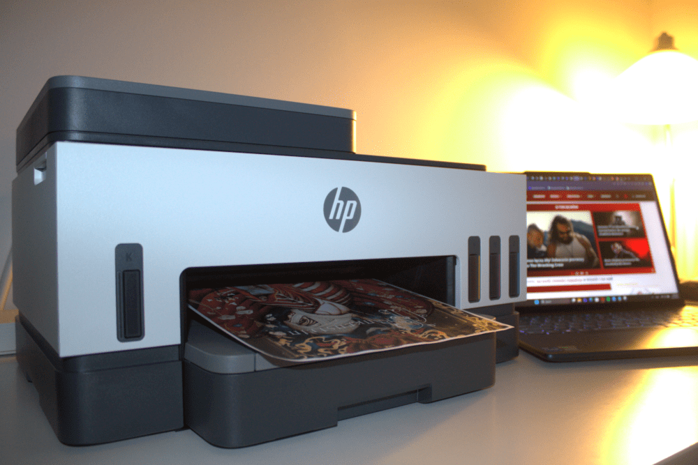 Warto też wspomnieć o papierze, bo to właśnie on w dużej mierze decyduje o efekcie końcowym — szczególnie przy bardziej kreatywnych projektach. HP Smart Tank 750 bez problemu radzi sobie zarówno ze standardowym papierem biurowym, jak i grubszymi arkuszami czy papierem fotograficznym, który robi ogromną różnicę przy plakatach przeznaczonych do ramy. Ten sam plik może wyglądać „poprawnie” albo naprawdę dobrze — wszystko zależy od tego, na czym go wydrukujesz. I to daje sporą swobodę eksperymentowania, bez konieczności korzystania z zewnętrznych usług.