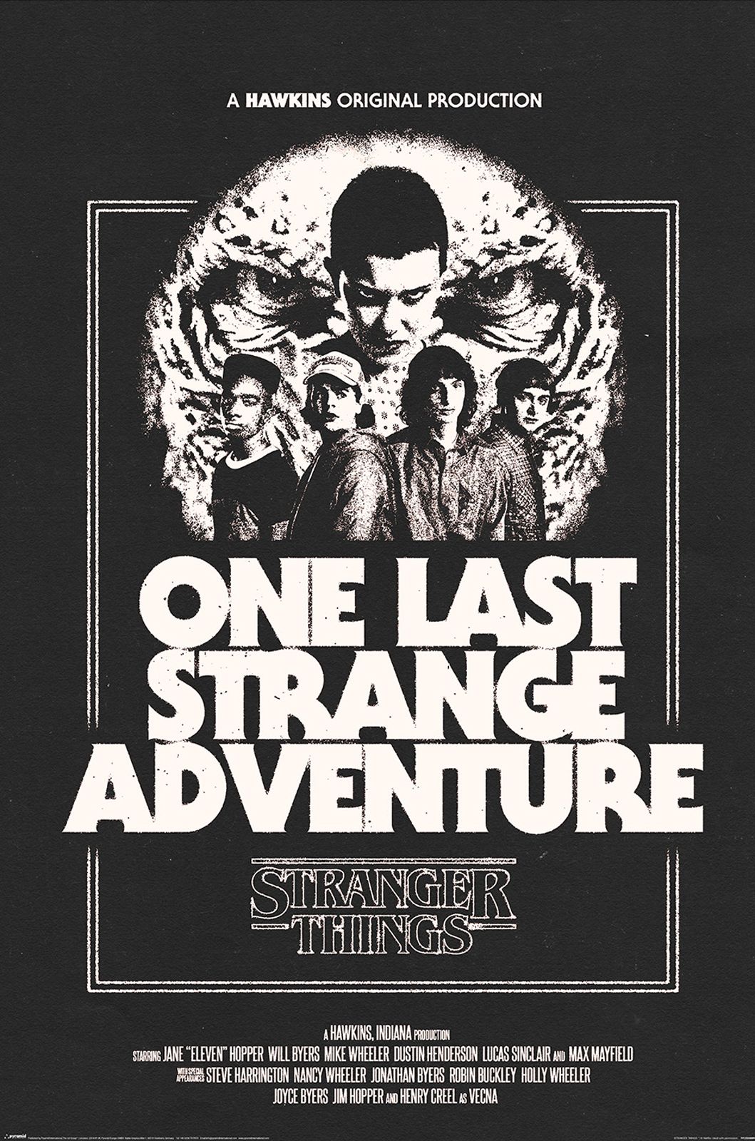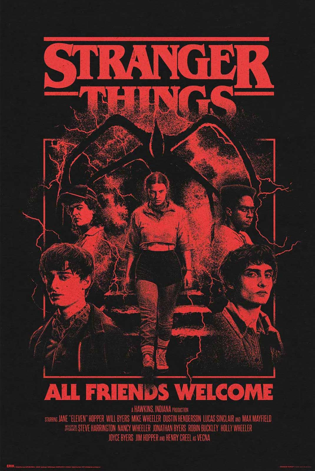 Dla intensywniejszego efektu świetnie sprawdzi się świecący plakat Stranger Things Vecna do pokoju fana, a jeśli lubisz akcenty związane z główną piątką bohaterów, możesz dodać plakat Stranger Things Hawkins Heroes z bohaterami serialu.