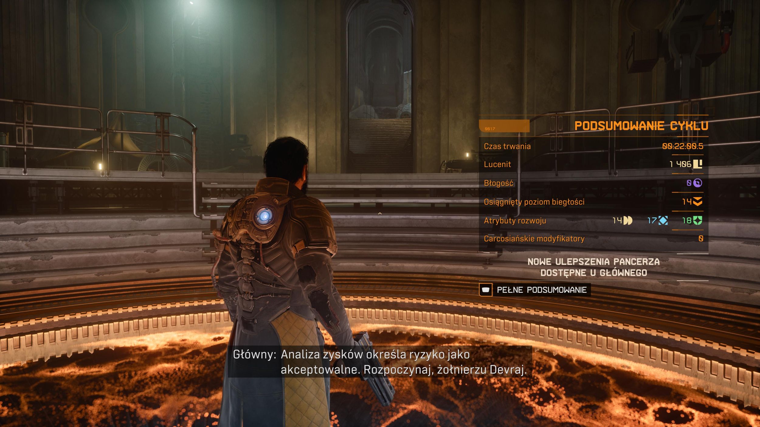 Wcielamy się tu w Arjuna Devraja, członka wyprawy badawczo-ratunkowej Echelon IV, której celem jest odnalezienie zaginionej załogi Echelon III oraz odkrycie tajemnic planety Carcosa. Zgodnie z założeniami gatunku, bohater wraca do życia po śmierci, odradzając się w bazie i zaczynając wszystko od nowa. Na szczęście nie startujemy całkowicie od zera. Po każdym runie dostajemy zebraną walutę (pomniejszoną o karę za śmierć), którą wydajemy na rozwój postaci – może to być premia do życia, mocy lub dająca bonusy na start, jak na przykład klucz umożliwiający otwarcie skrytki, dodatkowe życie lub zwiększony poziom broni i umiejętności. Wszystko to jest obecne i działa dokładnie tak, jak można się spodziewać.