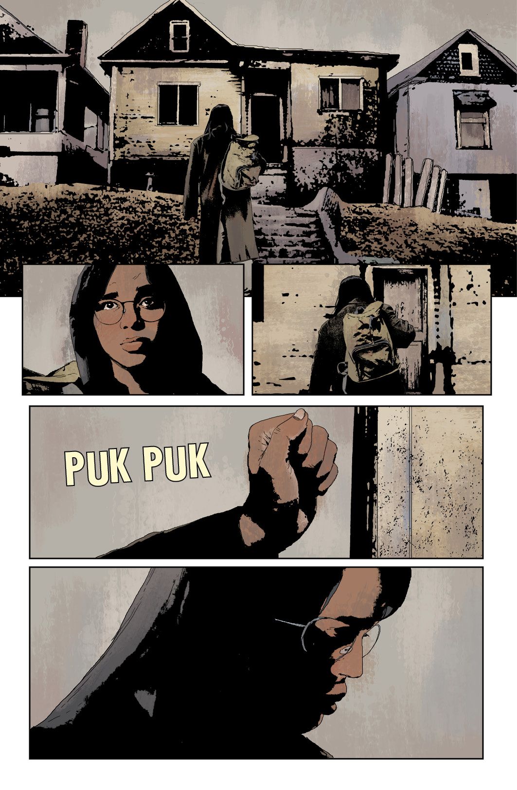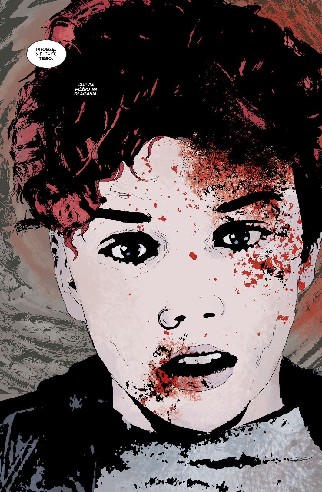 I tu znów Lemire'a wspiera swymi pracami Andrea Sorrentino. Podobnie jak w Pierwotnym, posługuje się tu dwoma technikami rysunku, przypisanym konkretnym wydarzeniom w czasie. Nastoletnia przeszłość Trish i Jackie to lżejsze i bardziej barwne ilustracje, choć nie spodziewajcie się w nich samych słodkości. To Ameryka małomiasteczkowa, taka, która nie będzie great again, bo great nigdy tak naprawdę nie była. Druga strona rysunkowego medalu to klasyczny, jeśli można tak powiedzieć, Sorrentino. Mrok, cienie, szalone kadrowanie, ale i realizm. Dostajemy więc sorrentinowski pakiet, który zadowoli każdego fana horroru.