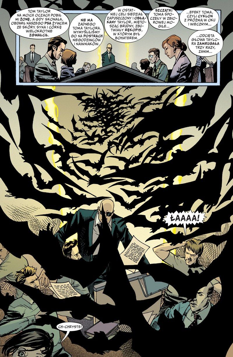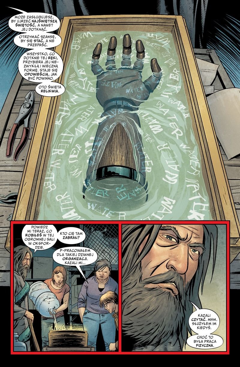 Niepisane tom 4 to opowieść nie tylko o samym Taylorze i jego przeciwnikach. Pojawiają się tu historie o ludziach potrafiących przekuć słowa w rzeczywistość. I jakby mimochodem Carey daje nam kilka naprawdę dobrze rozpisanych historii odbiegających tematyką od głównego wątku. Widzimy powstanie sekty, która nawet nie próbuje maskować swojej złowieszczości, a jej lider mógłby uczyć Jonesa i Mansona jak prowadzić tego typu organizację. Swoją drogą, Lucas Filby jest łudząco podobny do pewnego komiksowego arcymistrza parającego się magią…