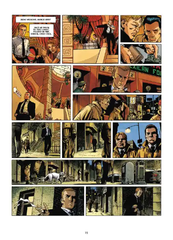 Ciekawe są też ilustracje. Akcja ma miejsce w roku 1997, ale USA w wykonaniu Richarda Guerineau nosi w sobie ślady poprzednich dekad. Są dumne neony, gdzieś tam przemykają relikty dawnej motoryzacji, a i pewne postaci są żywcem wyjęte z przeszłości. Rysownik składa też hołd kinematografii i to w ciekawy sposób, między innymi poprzez skromną obecność choćby braci Vega. No i oczywiście strzygi - pojawiające się kiedy trzeba, nieepatujące swoją mroczną fizjonomią i przy całej nie-ludzkości, nader ludzkie. Nieźle wypadają też sceny walki, zwłaszcza w wykonaniu pewnej tajemniczej agentki.