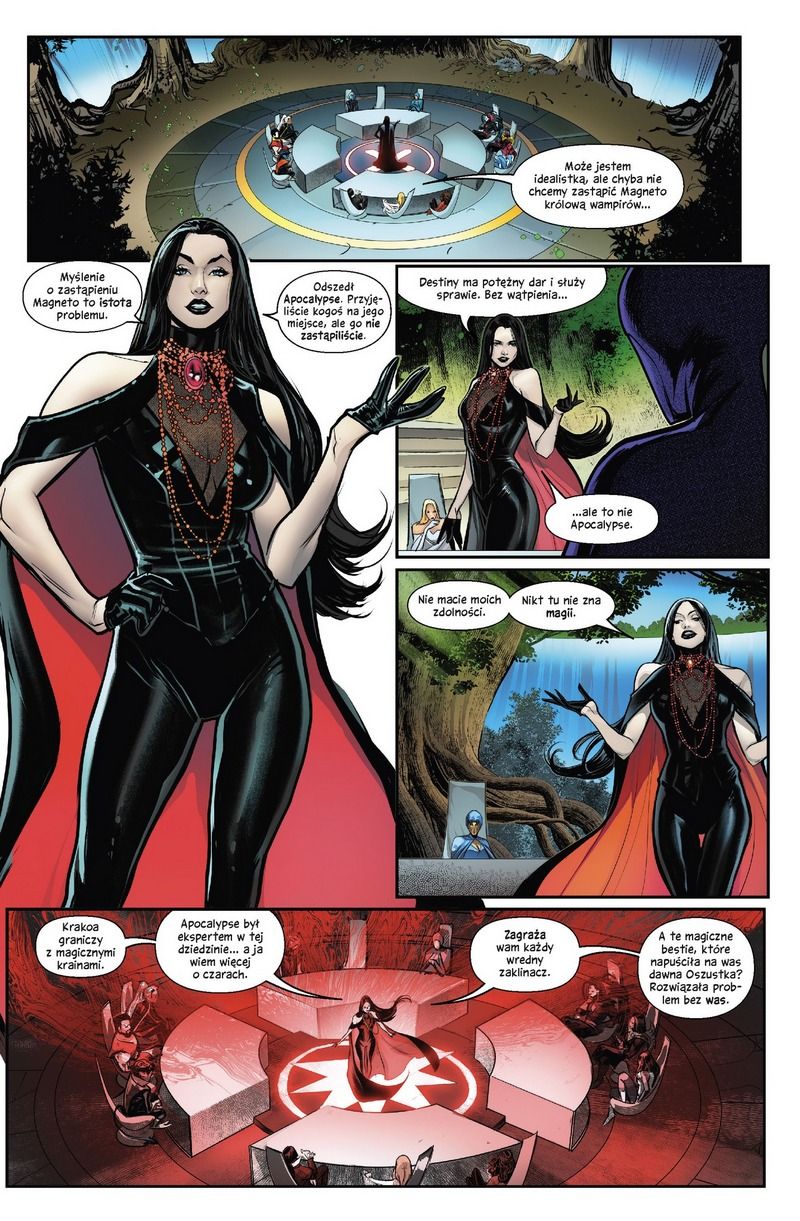 Autor Die daje też czas innym bohaterom. Exodus odkrywa osobistego mesjasza. Destiny i Mystique grają w swoją grę, a reszta bohaterów nieco niknie w ich cieniu. Zaskakująco dobrze radzi sobie tu Nightcrawler, od dawna spychany na drugi plan w świecie mutantów. Do tego dochodzi Orchis, która zyskała w oczach ludzi udziałem w walce z Protoplastą. Antymutancką atmosferę podgrzewa fakt, że nieśmiertelność mutantów wyszła na jaw i zachłanna ludzkość też tak chce… Gillen wzorowo uniósł dziedzictwo Hickmana i choć niektóre przetasowania były na wyrost, szykuje się niezły finał Ery Krakoi. Co jest pocieszające, ale i smutne.