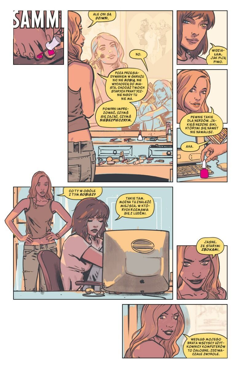 Od razu uspokajam – na szczęście jest nieco lepiej niż w drugim tomie, chociaż to jeszcze nie poziom, do którego przyzwyczaiły nas pierwsze zeszyty. Lepiej poznajemy PH34R, aktualnie cybernetyczną zabójczynię undernetu, a wcześniej zwykłą, nieco wycofaną dziewczynę o imieniu Samara. Młodsza siostra Gabriela już w 1999 roku chciała dowiedzieć się co jej brat z przyjaciółmi całymi dniami robią przed komputerem. Odsunięcie dziewczyny na boczny tor ostatecznie okazało się niezbyt trafną decyzją.