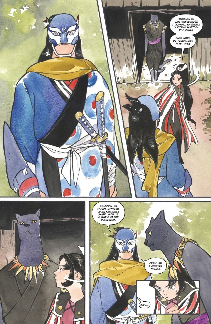 Okładka i tytuł sugerują, że dostaniemy jakąś wariancję na temat Wojny domowej Millara. Nie do końca tak jest. Mamy dwie strony konfliktu, które w pewien sposób przypominają Iron Mana i Kapitana Amerykę, ale bliżej im do autorskich bohaterów niż kopii klasycznych herosów. Momoko przepuszcza wszystko przez filtr folkloru i legend tak mocno, że Żelazny Samuraj to nic innego jak zaklęta zbroja Bake-yoroi, a tutejszy Cap/Yamato od tarczy preferuje miecz. Jest jeszcze Pajęczak z wyraźnie dominującą stroną pajęczą i rodzeństwo Maximoff, których rodzony ojciec by nie poznał. Peach Momoko snuje opowieść lekko, w stylu znanym fanom wielkich shonenów, gdzie epickie walki mieszają się z humorystycznymi detalami, a mitologia Japonii nabiera zupełnie nowego wymiaru. Ale gdzieś w tym są echa poezji animacji mistrza Miyazakiego, choć subtelne.