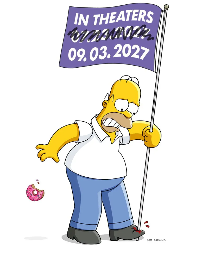Ledwo co została ogłoszona informacja o tym, że drugi film kinowy o Simpsonach powstaje, a już zaliczył on opóźnienie. Produkcja początkowo do kina trafić miała 23 lipca 2027 roku, ale niestety tak się nie stanie. Na chwilę obecną premiera filmu zaplanowana jest na 3 września 2027 roku. Nie jest to bardzo duże opóźnienie, ale raczej nie wróży nic dobrego. Warto zaznaczyć, że o przesunięciu premiery postanowiono poinformować w formie zabawnej grafiki.