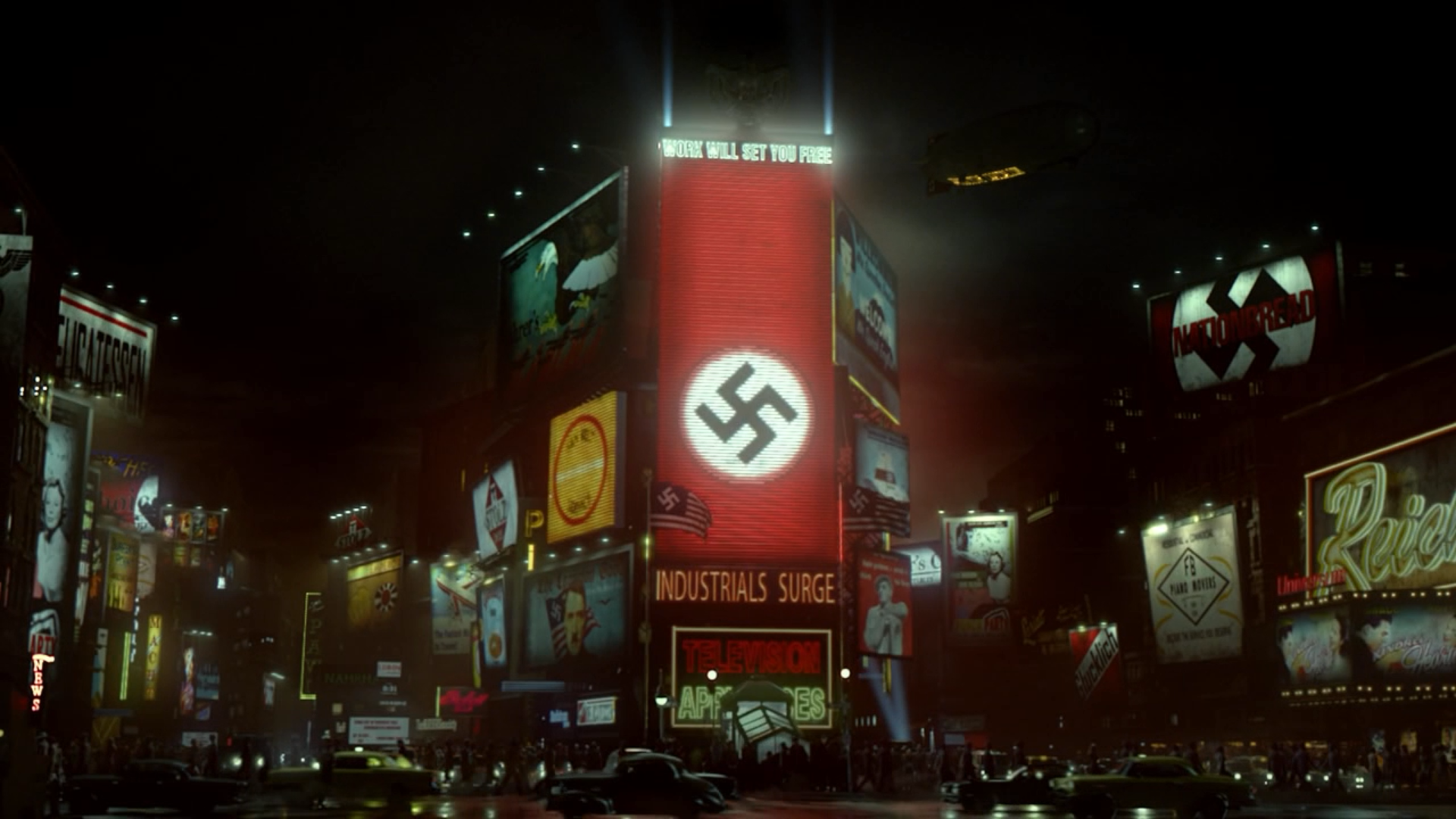 Opowiem teraz o jednym z wniosków, do których doszedłem stosunkowo wcześnie. W Niemczech zatrudniliśmy artystę, aby stworzył rysunki koncepcyjne, które pomogłyby nam przedstawić nadawcy, naszą wizję produkcji. Opowiedziałem mu o pewnej scenie na Times Square, w której to cały plac miał być w nazistowskich banerach. Wówczas artysta przedstawił pierwszą grafikę, w której to nowojorskie skrzyżowanie było oblepione bilbordami z kuflami piwa, kiełbaskami i sauerkrautami. Kiedy ją zobaczyłem, skomentowałem, że przecież ta wizja nie wygląda źle. Jednocześnie uświadomiłem sobie, że wątkiem, który to jest taki straszny w tym alternatywnym świecie, nie jest wcale wszechobecna niemiecka kultura. Nie ma w końcu nic złego w piciu piwa i jedzeniu kiełbas. Prawdziwym problemem jest, że każdy będzie miał nazistowskie wartości. W związku z tym, ostateczna wersja tej sceny w serialu, zawiera bilbordy dotyczące pracy i podporządkowania jednostki woli zbiorowości. Ta jednostka jest bardzo mała w nazistowskim i faszystowskim społeczeństwie, liczy się wyłącznie grupa. Ciekawym jest, że wiele rzeczy, których się nauczyłem podczas pracy nad W archiwum X później zaadaptowałem w Człowieku z Wysokiego Zamku. W trakcie pracy nad pierwszą z tych produkcji, my jako twórcy mieliśmy w zwyczaju mówić, że coś jest straszne tylko na tyle, na ile wydaje się wiarygodne.