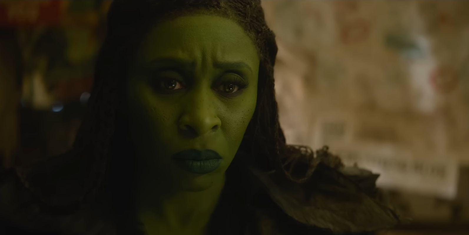 No i oczywiście last, but not least – Elphaba. Jestem jej totalną fanką i nie mam zamiaru tego ukrywać. Poza tym, że jest to moja ulubiona postać z Wicked, jest dla mnie szczególnie ważną bohaterką w ogóle. W nowej części Elphaba, wygnana z Oz, niezmiennie chce pokonać czarnoksiężnika-szarlatana, aby uwolnić Zwierzęta i przedstawić Ozjanom prawdę. Tylko czy oni w ogóle jej chcą? Czy może sami chcą wierzyć w kłamstwa, które przynajmniej dają nadzieję? Słynna Zła Czarownica z Zachodu jest przykładem na to, jaką potęgę może mieć ostracyzm w stosunku do osób, które są w jakiś sposób inne. Elphaba nigdy nie chciała nikogo skrzywdzić, a pod wpływem społeczeństwa zaczęła wierzyć w swoje własne zło. Cieszę się, że jej postać została rozwinięta w filmowej kontynuacji – ma konkretny i cel, do którego dąży za wszelką cenę. Bohaterka, która faktycznie działa poprzez akcję. Mimo że jej sylwetka najlepiej rozpisana jest w książce, w Wicked: Na dobre Elphaba pokazuje swoją motywację, czego brakowało w zeszłorocznym Wicked.