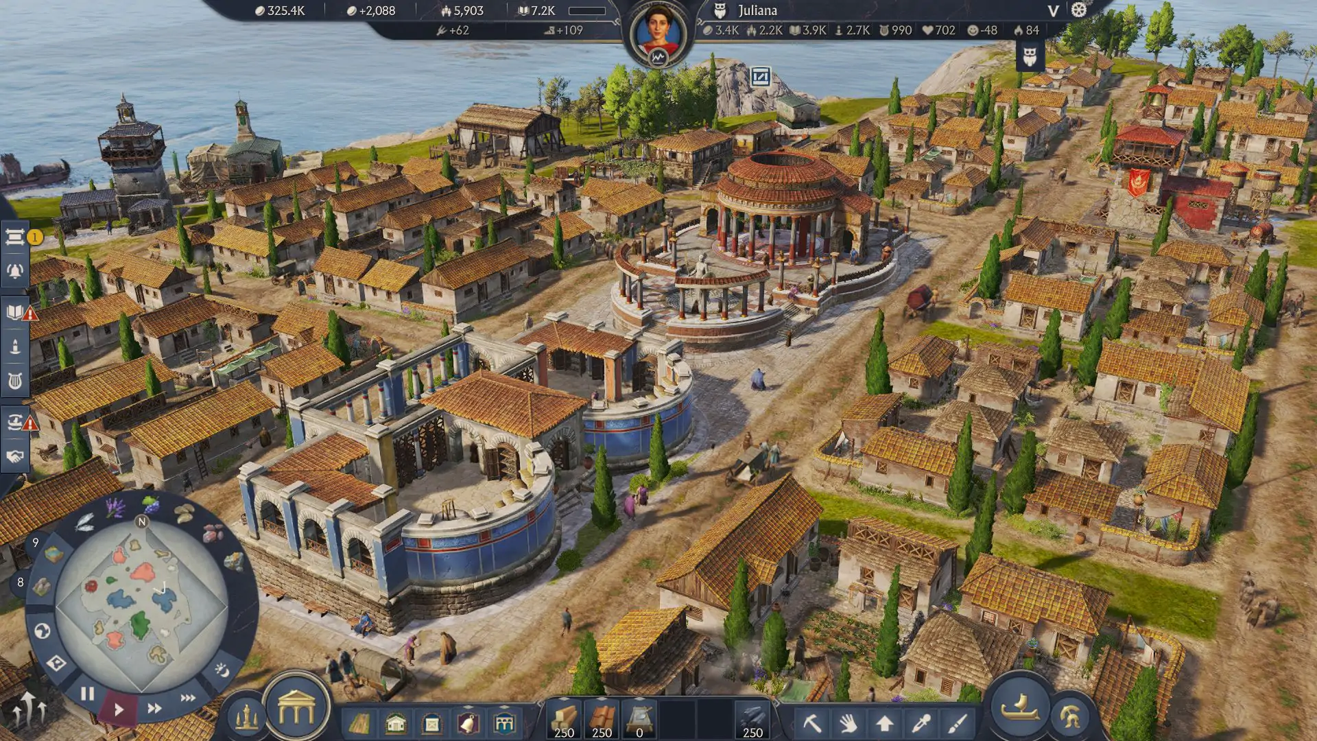 Już po kilku godzinach z wersją na PS5 wiedziałem jedno. To nie jest pobieżny port. To gra starannie podrasowana pod konsolowe sterowanie, z intuicyjnym interfejsem i przemyślanym układem menu. Kamera pracuje płynnie, wybór budynków jest szybki i wygodny, a całe zarządzanie prowincjami zostało zaprojektowane tak, aby nie zmuszać gracza do gimnastyki z padem. Zdarzały się momenty, kiedy interfejs ładował się wolniej, zwłaszcza przy analizie bardziej złożonych łańcuchów handlowych, ale nie były to sytuacje, które psuły zabawę.