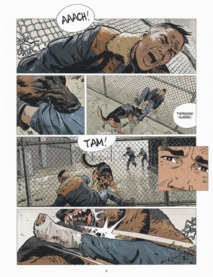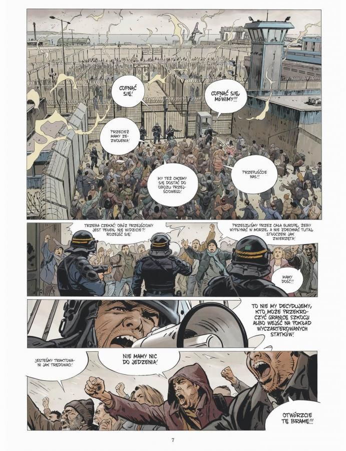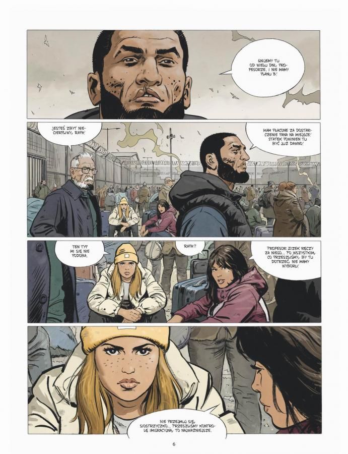 Już na samym starcie komiks nie daje czytelnikowi prostych rozwiązań. Główny bohater Liam to nie typ o dobrym serduszku i dużym bicepsie. Chłop kradnie kobiecie paszport i dokumenty niezbędne do podróży statkiem poza kontynentalną Europę. Nie wiemy o nim zbyt wiele, a on sam zachowuje się tak, jakby nie chciał, by to się zmieniło. Pozostałe postaci nie są lepsze. Mamy profesora Zyzeka, jego asystentkę i ochroniarza. Sam Zyzek to również niestandardowy typ. Jajogłowy ma w swej głowie tajemniczy projekt, ale okoliczności są na tyle niepokojące, że nie oczekiwałbym arkadyjskiej wizji odnowy świata. Caryl Ferey nie próbuje sprzedać nam popkulturowych klisz również na płaszczyźnie obrazu swego świata.