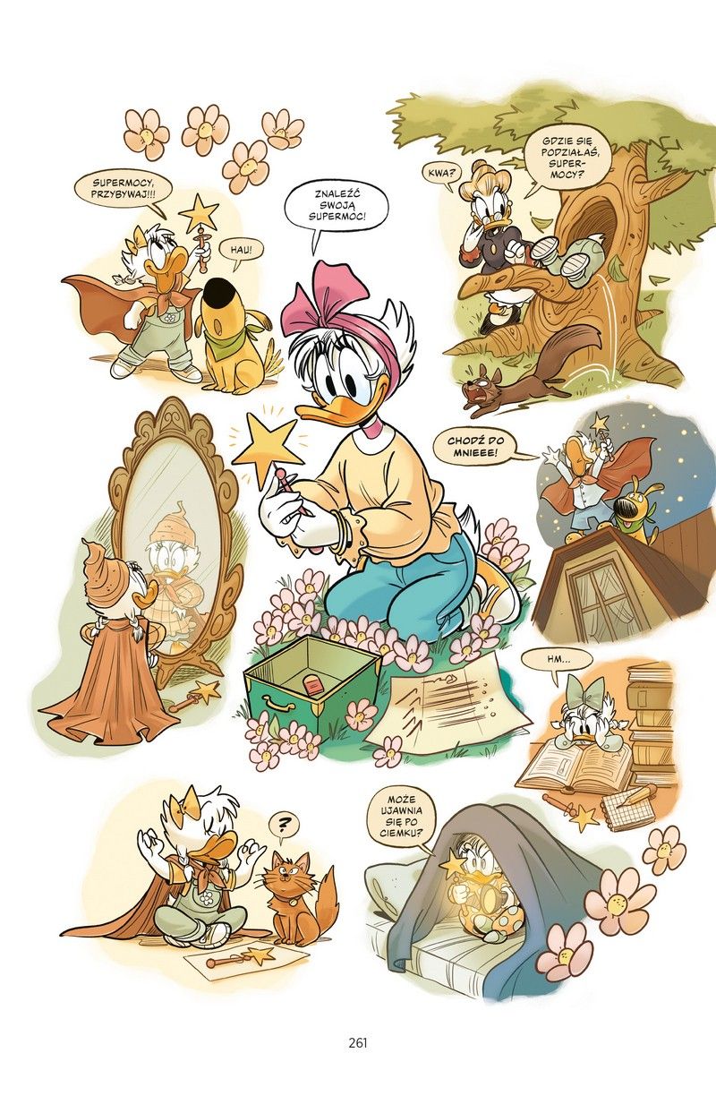 Podobnie jak w przypadku Donalda, ten album to hołd dla postaci, wzbogacony o nieco przydługi i lekko powtarzalny wstęp Mateusza Lisa i kilka okładkowych ilustracji z udziałem Daisy. W Nasza urocza Daisy znalazły się 22 krótsze i dłuższe historyjki, część znana już polskim czytelnikom, a część zupełnie premierowa. Zabrakło mi trochę różnorodności w tych opowieściach, ale zdarzają się przebłyski, jak chociażby pierwszy występ Daisy czy jej premierowe wskoczenie w kostium iście superbohaterskiej Superkwoczki. Tak czy siak – to idealna pozycja dla kaczkofanów, do których się zaliczam. Całe pokolenie biegające we wczesnych latach 90. do kiosków po komiksy powinno sięgnąć po ten album.