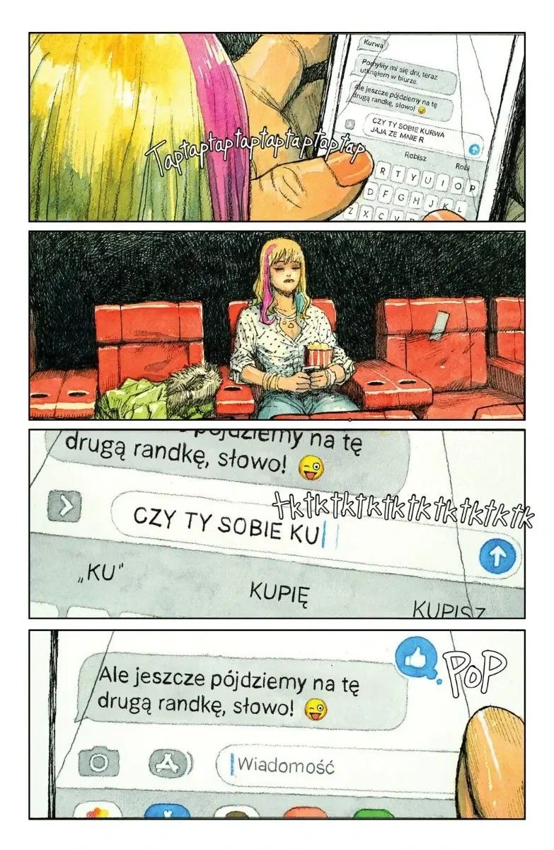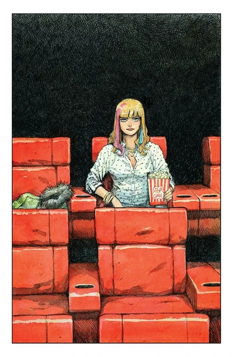 Zaczyna się jak u Hitchcocka – od trzęsienia ziemi. Może nie dosłownie, bo bohaterka komiksu wybiera się do kina. Jej towarzysz nie dotarł na drugą randkę, więc wystawiona Val zaczyna oglądać na telefonie… pornograficzne filmiki. Chwilę później do sali wpada uzbrojony terrorysta i rozpoczyna krwawą masakrę. I już. Tak po prostu kończy się życie naszej protagonistki. A przynajmniej na ziemskim łez padole, bo chwilę później Val budzi się jako… duch. I nie jest sama.