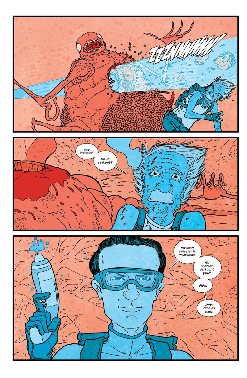 Jonathan Hickman pokazuje, że potrafi stworzyć nie tylko śmiałe i monumentalne dzieło, ale przy tym burzyć pomniki i bawić się absurdalnym humorem. Weźmy kwestię podwójnych Oppenheimerów i Einsteinów. W przypadku tego pierwszego to konflikt w rodzinnym i bardzo wewnętrznym środowisku. Twórca bomby atomowej to zresztą postać moralnie żarłoczna, poszerzająca wiedzę na kanibalistyczną modłę. Równie ciekawie jest z Albertem i Albrechtem. Ojciec teorii względności nie jest tak genialny, jak mu się wydaje, co wcale nie przeszkadza mu stworzyć sojusz ze swoim alternatywnym, bardziej okrutnym odpowiednikiem. Jest jeszcze kwestia pozaziemska, dotyczącą Gagarina i Łajki, ale to już opowieść w space operowych klimatach. Hickman nie powziął sobie za cel stworzenie ultra-naukowego high SF, ale i tak dał nam rozrywkę, która wymaga pewnego zrozumienia. Może nie od razu znajomości biografii każdego z bohaterów i jego dokonań, ale pewnego dystansu do spraw poważnych.