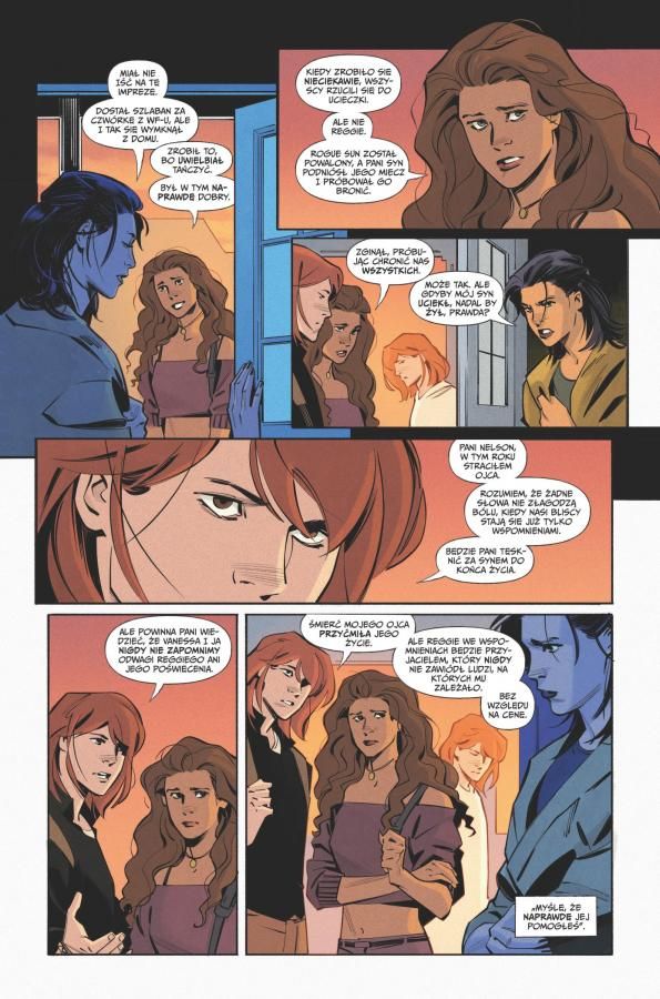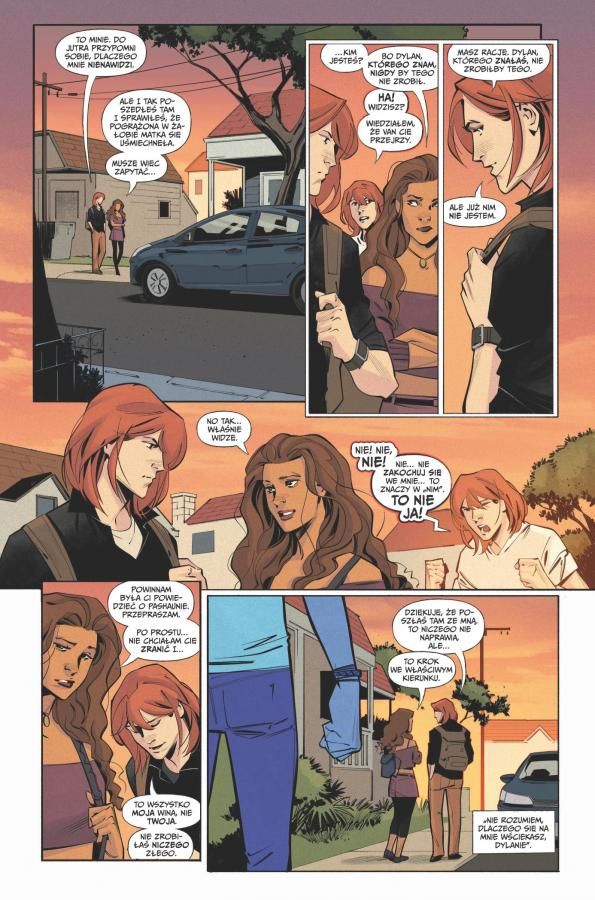 Dylan i rodzina. Nie dziwię się, że chłopak jest, jaki jest, jeśli tatko prowadził podwójne życie i dotąd nieznana część familii traktuje go z mieszaniną pogardy i zazdrości. W tym tomie debiutuje dziadek bohatera, który ma do niego zupełnie inne podejście niż ojciec. Choć i on w pewnym momencie zachowuje się jak należy. Warstwa obyczajowa w Rogue Sun nigdy nie była zaniedbywana, lecz tutaj Parrott jeszcze pogłębia jej znaczenie. Do głosu dochodzą pozostali członkowie rodziny, co może ciekawie zaowocować w kolejnych tomach.