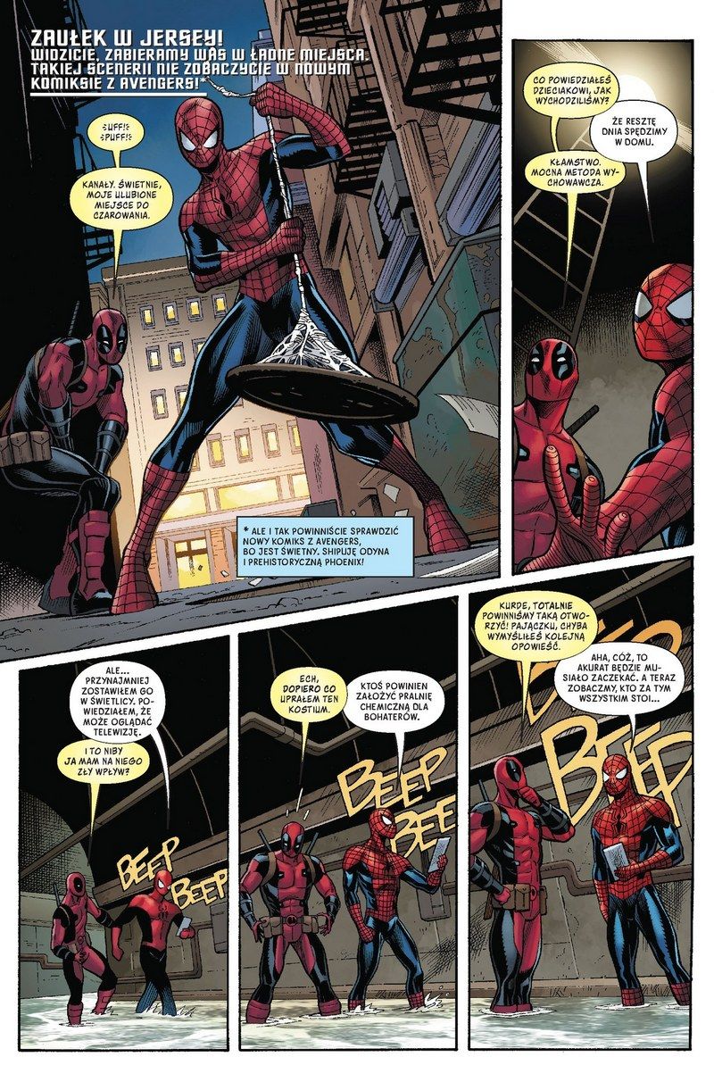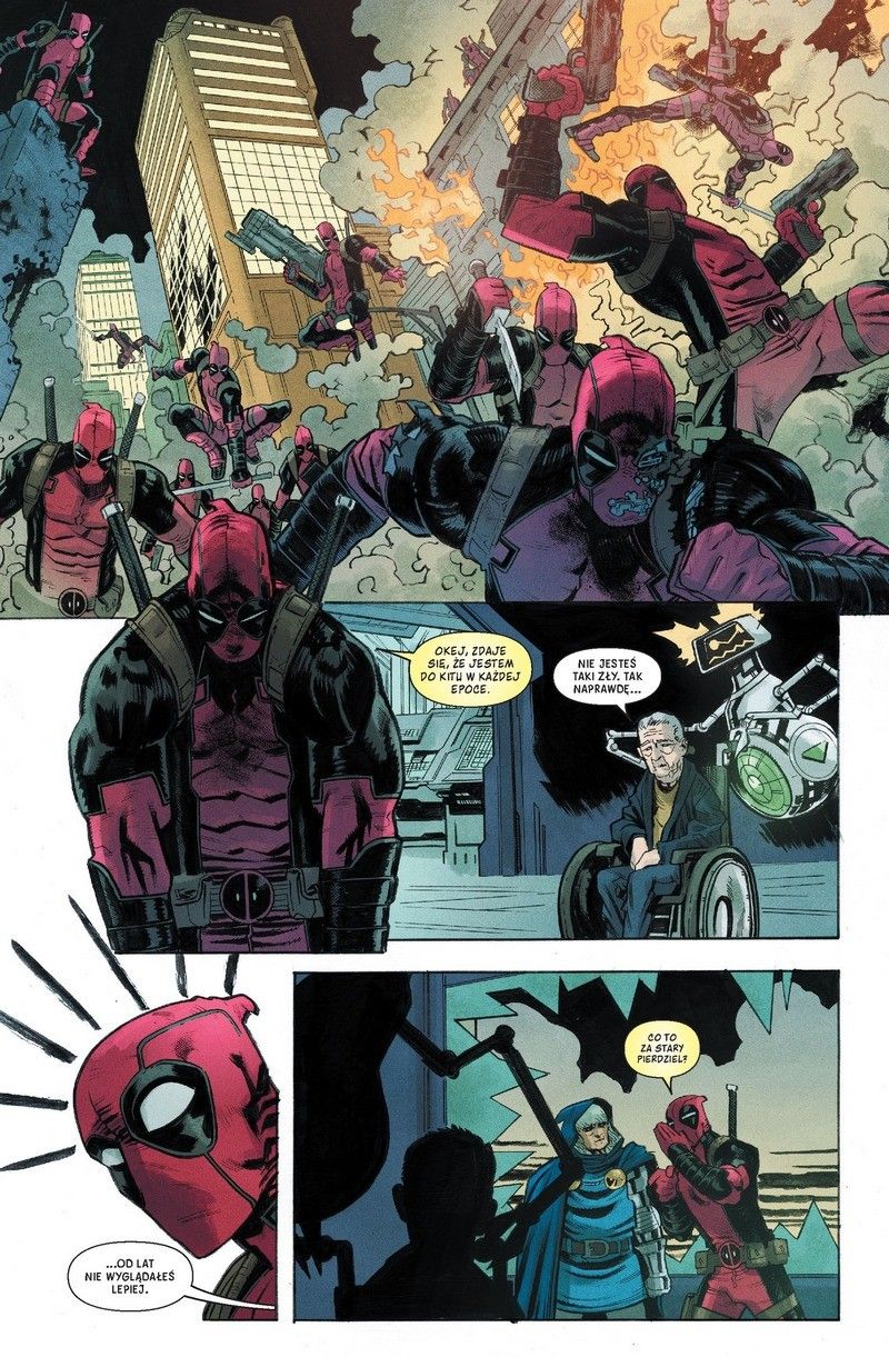 Seria Spider-Man/Deadpool jedzie przede wszystkim na chemii między Wilsonem i Parkerem, ale dynamika między tymi postaciami to materiał na znacznie dłuższą serię, która pewnie wielu czytelnikom nigdy by się nie znudziła. Jako miłośnik obu postaci jestem wniebowzięty, bo chociaż zdarzają się tu nieco nudniejsze momenty, a poprzednim twórcom zdarzało się uciekać w słowotok, to Thompson jakby lepiej poradził sobie z proporcjami. Nie ma tu nieskończenie długich i niezbyt zrozumiałych dialogów, a kwintesencją jest finał, w którym scenarzysta umieścił… samego siebie. Ale w jakiej roli, tego już Wam nie zdradzę – polecam, żebyście sami do odkryli.